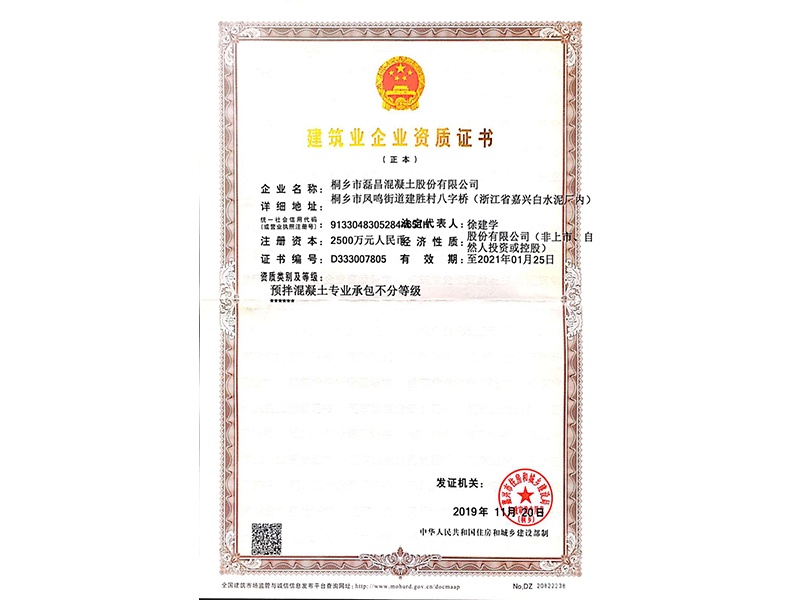2019年年底,基于組織框架改革,公司正式更名為桐鄉(xiāng)市磊昌混凝土股份有限公司。在今后的歲月里,我公司將進一步提升企業(yè)的技術力量和管理水平,使企業(yè)更上一個臺階,本著“團結、拼搏、開創(chuàng)、創(chuàng)新”的企業(yè)精神,竭誠為所有客戶提供最優(yōu)質的產(chǎn)品和最優(yōu)質的服務。